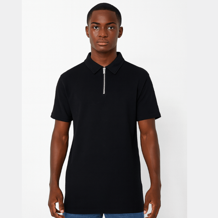 Keep it sleek and versatile with the BoohooMAN Black Half-Zip Polo. This short-sleeve polo shirt is designed with a clean-cut collar and a silver half-zip front, blending classic style with a modern twist. The soft, breathable fabric ensures comfort, making it perfect for everyday wear, casual outings, or smart-casual looks. Pair it with jeans, chinos, or shorts for a wardrobe staple that never goes out of style.
